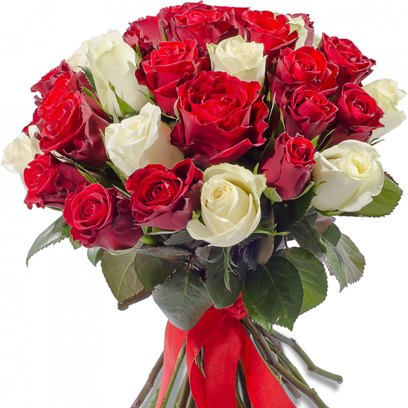 Букет из 21 красной и белой розы Кения